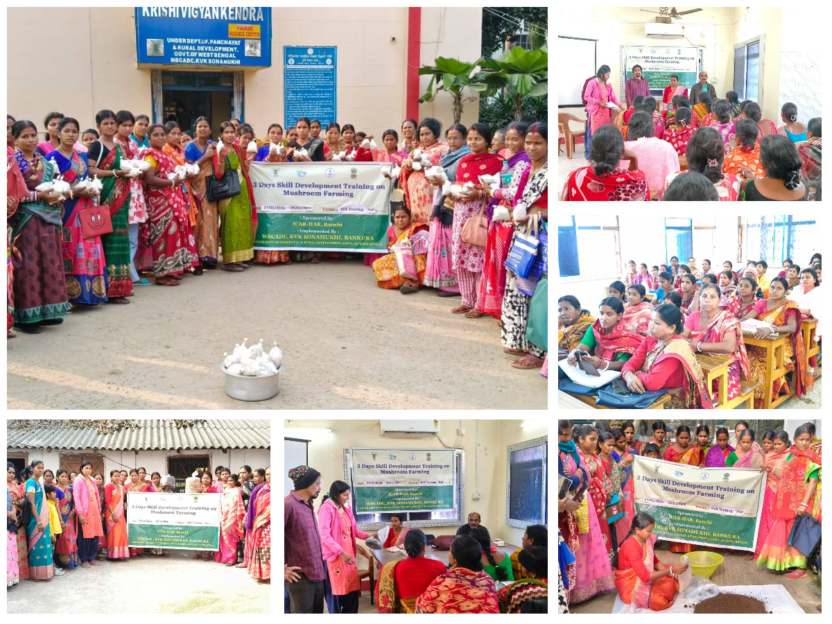 3 days Skill development training on Mushroom farming at KVK Bankura on 27 to 29 Jan, 2026 sponsored by ICAR-IIAB (Ranchi)